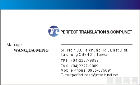 *我們還有更多的套版名片版型,請洽04-22279899 分機20